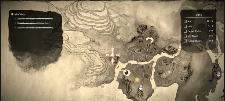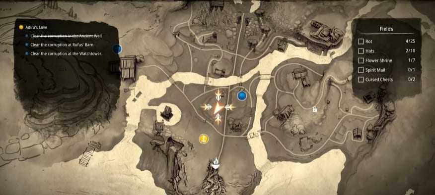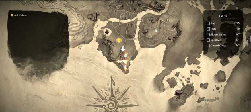 Поля также есть пара Проклятых сундуков, которые можно найти.Расположение этих сундуков указано ниже: