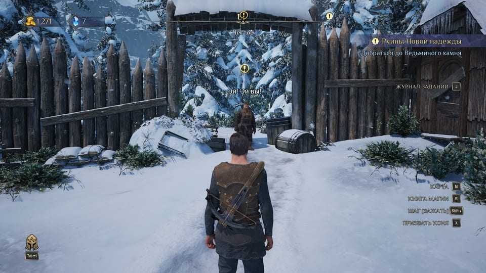 Заведите диалог с Альбертом в магической башне. Справа от башни найдите таверну «Гусь и логос», заведите диалог с трактирщиком. Отправляйтесь к обозначенным руинам, там вы встретите мага.