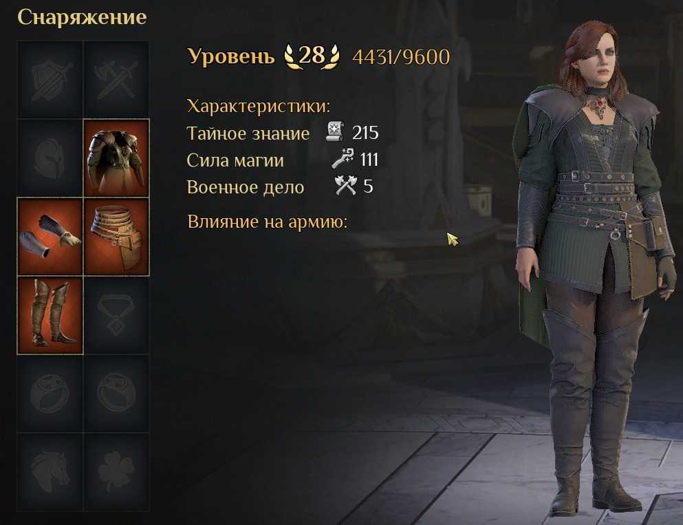 четыре предмета дают +38 к тайному знанию и +22 к силе магии
