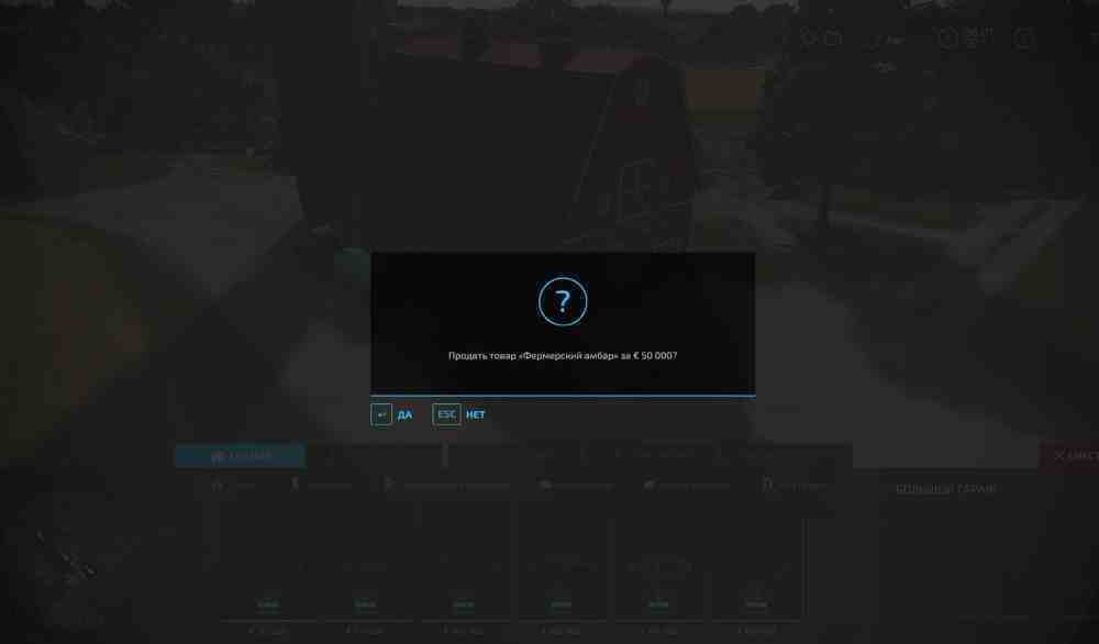 Коттедж и бункер для хранения зерна оставляем, так как они понадобятся для развития фермы. А вот большой амбар сейчас нам совершенно ни к чему. Выгружать сюда сено и солому неудобно, как и хранить тюки. Поэтому мы его продаём и зарабатываем 50 000 евро. Позже на его месте сможем построить сеновал, в котором хранить собранное сено и солому намного удобнее. Также поступаем и на других игровых картах. Оцениваем, какие строения, техника и инструменты нам понадобятся, а ненужные продаём и зарабатываем неплохие деньги.