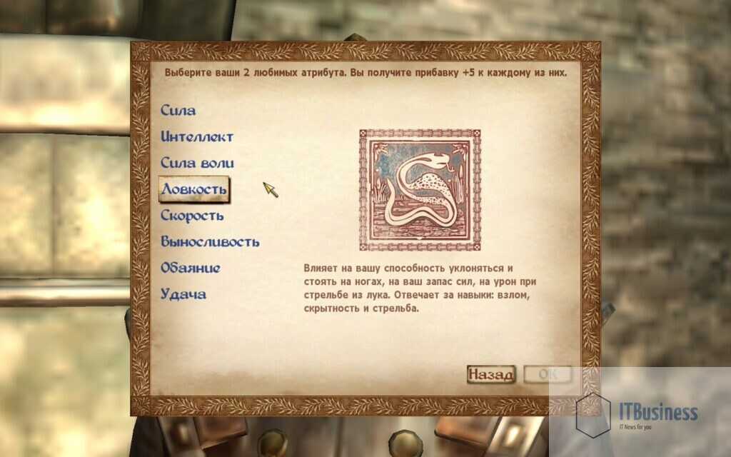 - Ловкость-определяет шанс избежать ошеломления (оглушения), урон, который можно нанести луками, и общую усталость