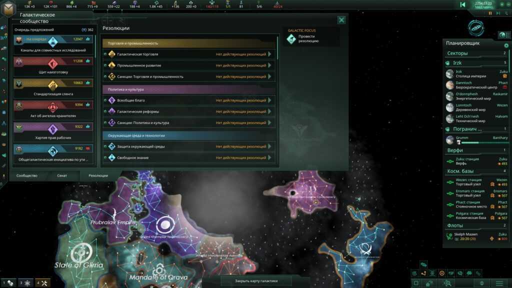 - Интерфейс Галактического сообщества, где вы можете соревноваться в Сенате.