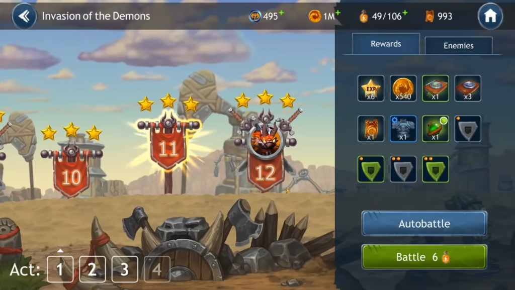 Что особенно важно для мобильной игры, автоматические бои проходят моментально и вы сразу получаете добычу. Не придется наблюдать, как привычные герои из раза в раз проходят одно и то же