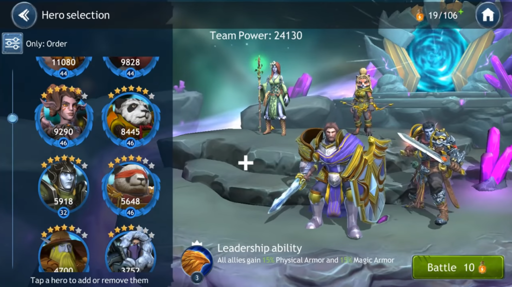 Как и во всех играх с механикой полоски хода, в Dragon Champions высоко ценятся герои, которые могут ей манипулировать. Замедлить врагов и ускорить союзников зачастую намного эффективнее, чем накладывать эффекты контроля. Их, кстати, в игре не так много. Оглушение остается довольно редким и ценным навыком. Зачастую, самой эффективной тактикой будет просто не дать сделать ход врагу за счет скорости своих героев.