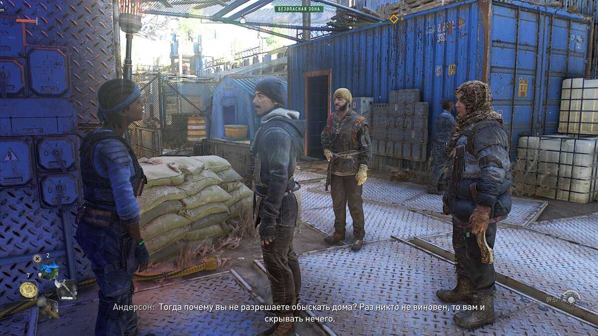Вилледор тоже не из простых: здесь идёт противостояние миротворцев и обычных жителей за территорию и власть. Миротворцы — это что-то вроде полиции: организованные войска, которые защищают город от заражённых и бандитов. Жители, они и в постапокалипсисе жители: фермеры, торговцы и простой люд, пытающийся как-то выжить. Они постоянно будут говорить, что миротворцы — звери и узурпаторы, а миротворцы о жителях — что те анархисты и бандиты. И тут начинаются первые нарративные проблемы.