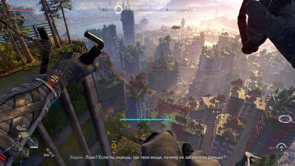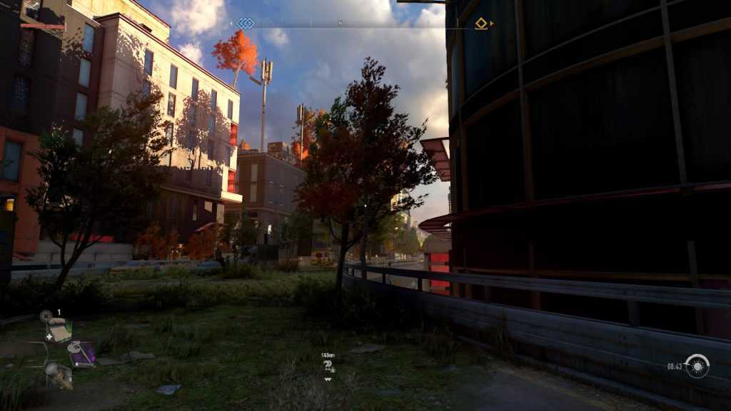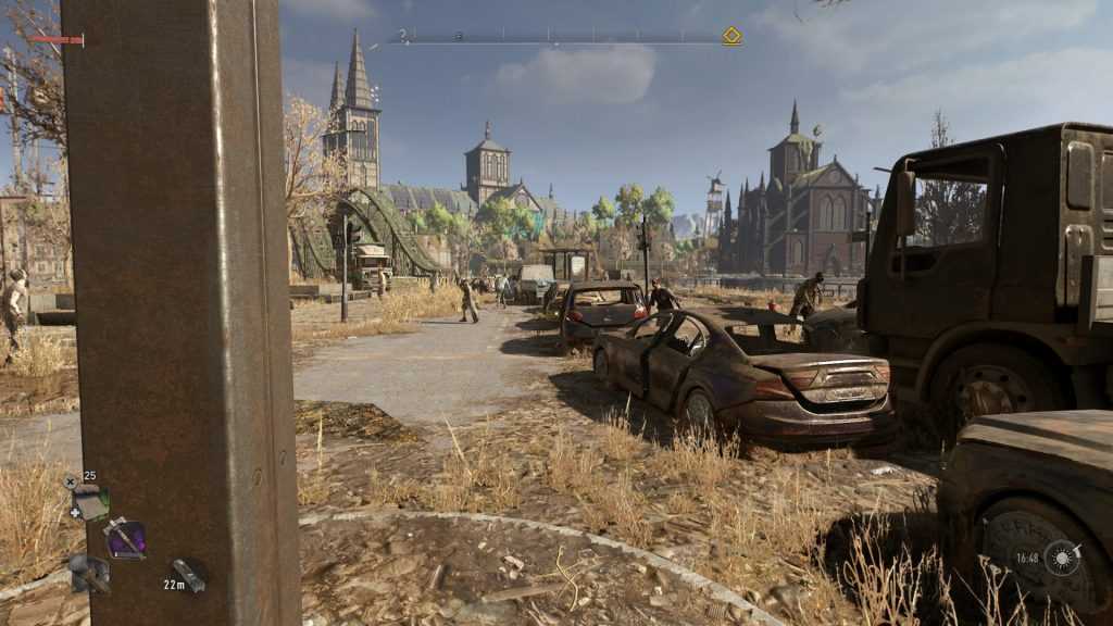 В Вилледор, также известный как Город, происходит большая часть событий Dying Light 2 Stay Human . Визуально у меня нет никаких сомнений здесь. Высокие небоскребы, разрушенные дома, военные контрольно-пропускные пункты и облученные пустоши усеивают огромный ландшафт открытого мира. Вы найдете много спрятанной добычи, различные задания и контейнеры с ингибиторами (используемые для повышения уровня вашего здоровья и выносливости). Точно так же вы испытываете непревзойденное чувство радости, когда получаете крюк и параплан, позволяющие с легкостью летать и мчаться на большие расстояния.