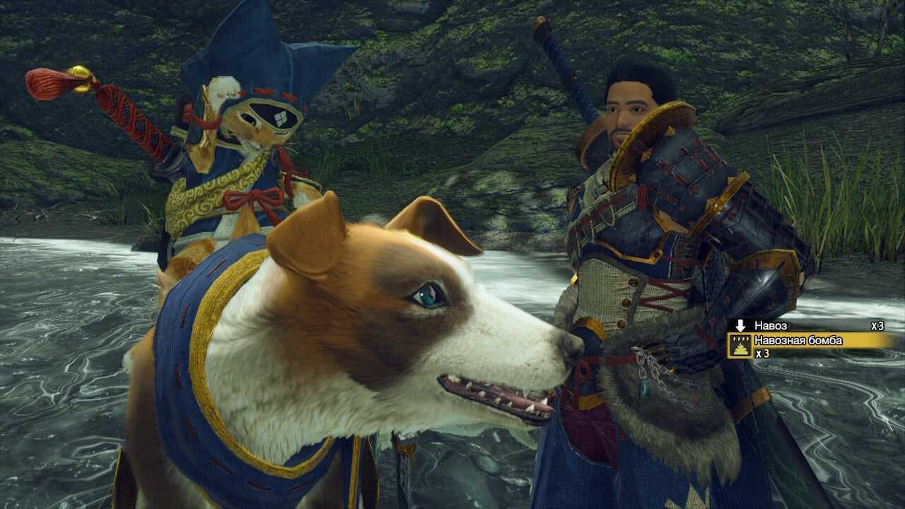 Monster Hunter: World начиналась с драматичного эпизода с представлением ключевых персонажей и крушением корабля охотников посреди – такое кинематографичное вступление понятнее западным игрокам. Rise же сразу переходит к делу. И дел тут очень, очень много: в первые часы меня бомбардировали текстовыми меню обучения, описывающими смысл десятков меню и механик. Стоило слепить своего охотника (а еще моих сопартийцев, кота и собаку) в довольно подробном редакторе персонажей, как меня отправили на обучение по всему, что есть в игре.