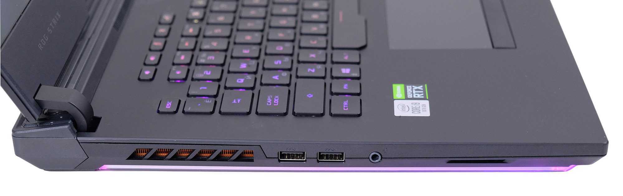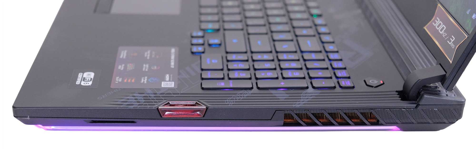 В итоге имеем 3 полноразмерных USB 3 type-A, что для игрового ноутбука лишним точно не будет. Есть и один USB-С, и HDMI для вывода изображения на монитор, и полноценный сетевой порт. Жаль только, что аудиовход комбинированный и нет возможности подключить микрофон отдельно.