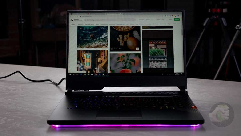 Дизайн играет важную роль в любом игровом ноутбуке, поскольку он помогает ноутбуку выделяться из толпы своими геймерскими акцентами. И в этом отношении Asus ROG Strix Scar 15 может набрать очки. Ноутбук хорошо спроектирован с привлекательными акцентами RGB и светящимся логотипом ROG на задней крышке. Под ноутбуком также проходит тонкая полоса RGB, которая отлично выглядит и улучшает общий игровой процесс.