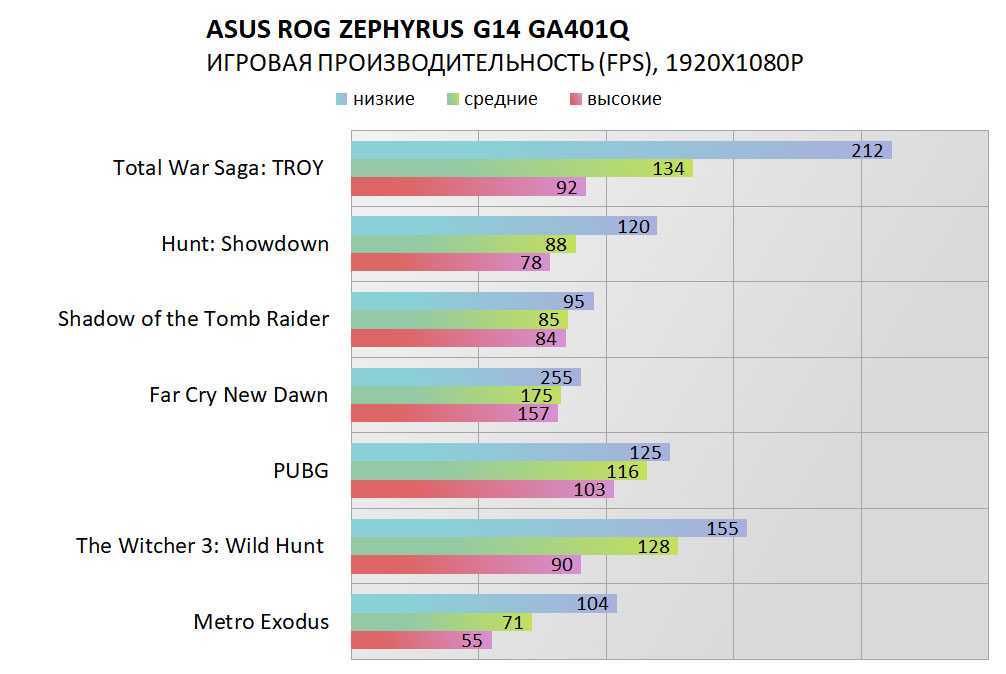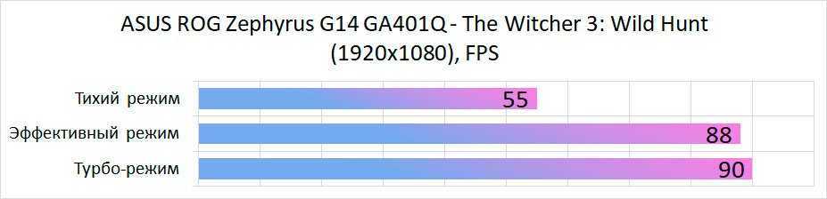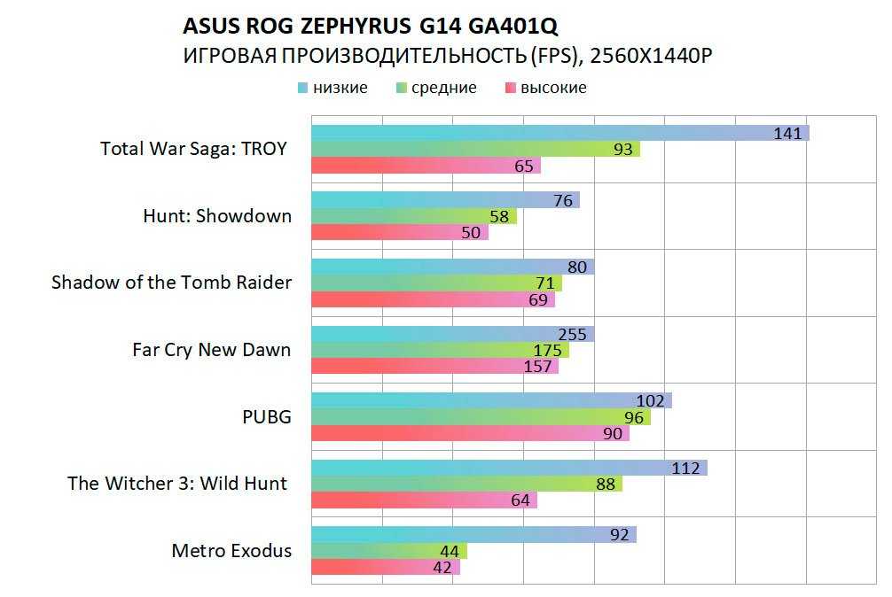 ASUS ROG Zephyrus G14 GA401Q оказался ещё более производительным, чем предшествующие модели: такой уровень для 14” компактного и относительно лёгкого (1,7 кг) лэптопа — практически потолок возможностей. Новый процессор Ryzen 9 5900HS делает модель очень быстрой: 16 потоков дают огромную производительность при работе, также высокая частота в бусте до 4,6 ГГц позволяет реализовать отличную производительность в играх. Располагая также дискретной видеокартой RTX 3060 Laptop, получаем достаточную мощность для игр в разрешении QWHD 2560х1440. Здесь оно не только для галочки, а вполне применимо на практике, причём достаточно комфортные FPS показывают даже требовательные к железу AAA-проекты