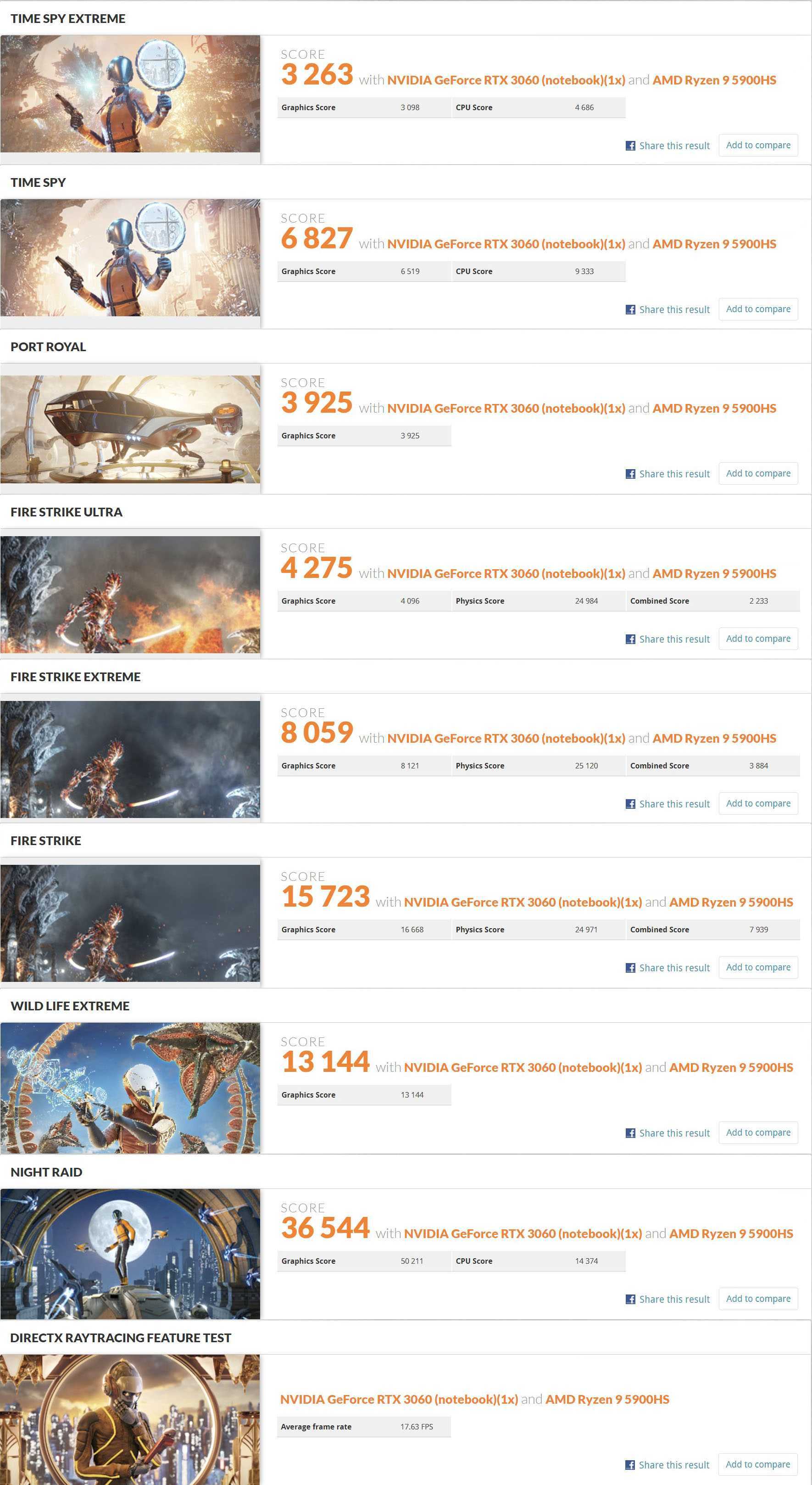 Полученные баллы немного ниже, чем у версий RTX 3060 Laptop с TDP, близким к максимальным 115 Вт, но отличаются они совсем немного – максимум на 5-10%. Так что в буст-режиме мы получаем почти полную производительность, урезана она не сильно. Также увеличить FPS может поддержка технологии DLSS.