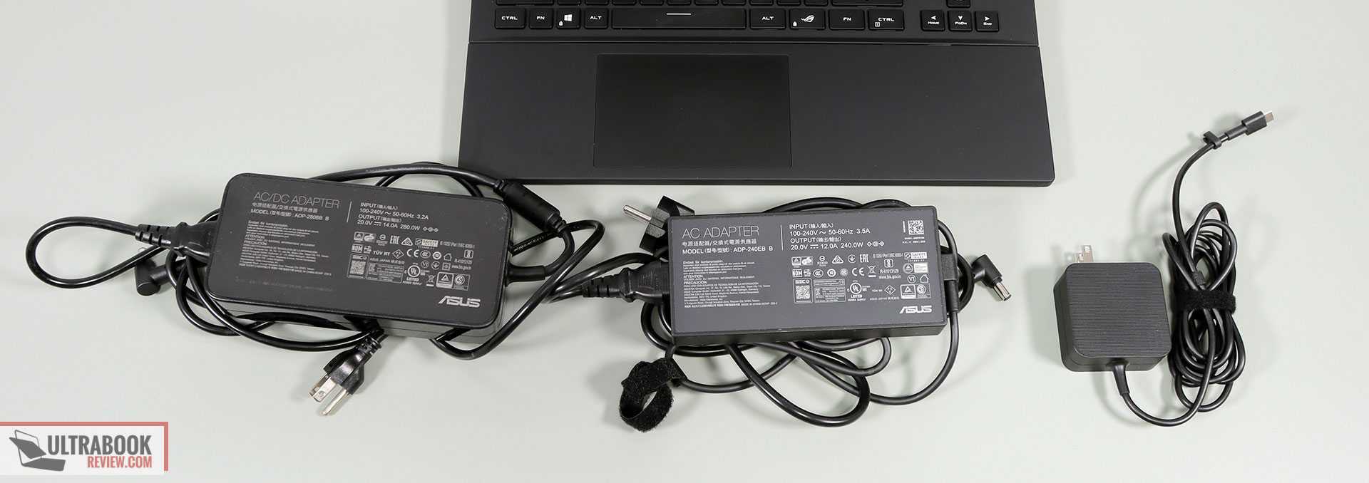 Here’s how the 280W brick looks next to the 240W brick and a 65W USB-C charger.