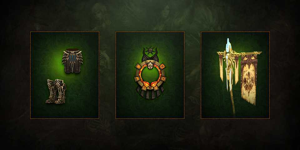 Начиная с 17-го сезона мы даем игрокам возможность получить награды, которые они могли пропустить ранее. В 26-м сезоне откроются награды, изначально доступные в 14-м сезоне. Помимо обуви и ножной брони эксклюзивного комплекта завоевателя вас ждет набор рамок портретов в стиле Тал Раши. Нефалемов, желающих стать воплощением духа правосудия, ждет флаг в стиле нашего любимого архангела. Запомните: правосудие неподсудно!