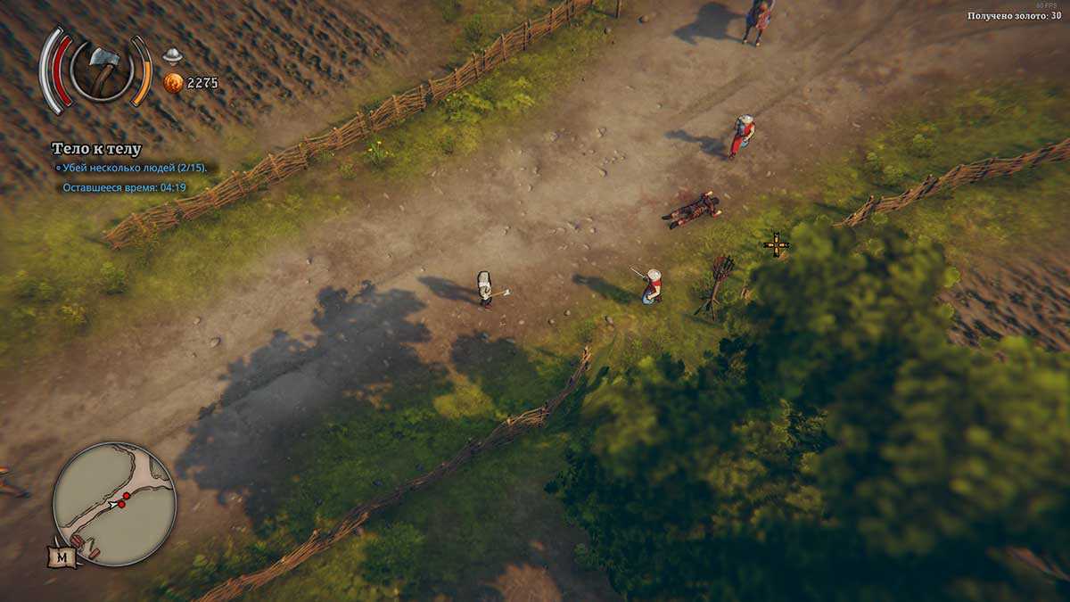 Также в драке поможет оружие. Арсенал небольшой, но выбрать клинок по душе всё же можно. Гай способен носить с собой меч, копьё, топор, косу, кирку и прочие штуки — у всех разные особенности и характеристики. К примеру, враги не могут парировать удар копьём, но разить им нужно точно в цель. А вот удар алебарды можно заблокировать, зато атака по площади сразу прибьёт парочку неприятелей.
