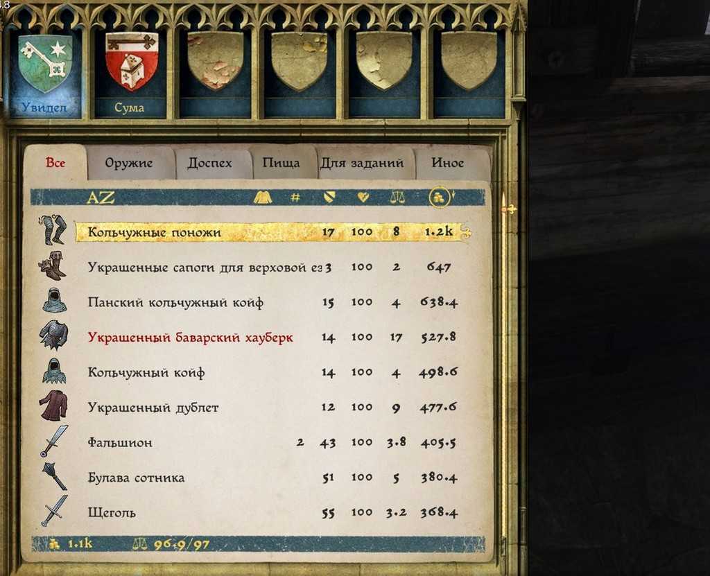 Лучший починенный шмот можно надеть на себя, а можно оставить в сундучке в родительском доме. Я предпочитаю все класть в сундук и скакать в Тальмберг налегке с отцовским мечом, оставляя максимально веса для шмота из Тальмберга (а до этого и для половецкого шмота, если вознамерились как описано в спецсекции ниже чуть пострелять с одной интересной крыши).