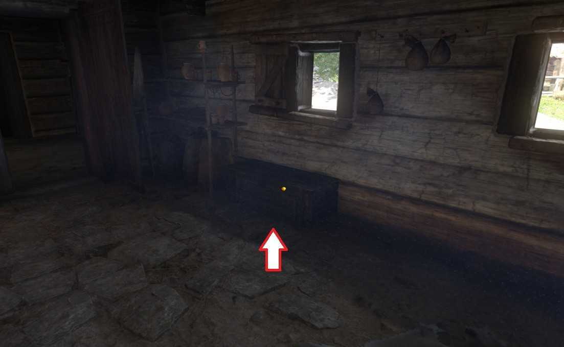 80 грошей, шнапс, календула, куча жратвы, ремнаборы. Замки «Сложные», залезать лучше уже с «Прочными отмычками» и со второго этажа. Страж лавки довольно чутко прислушивается к задней комнате на первом этаже, поэтому, имейте в виду, может зайти на огонек.