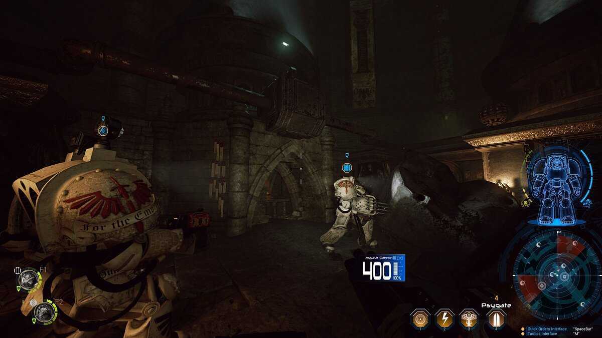 Еще в команде будет Апотекарий и Штурмовик, первый будет лечить вас, второй — поддерживать огнем штурмболтера, хотя вы можете задать другое оружие после телепортации на базу. Чтобы облегчить прохождение нужно постоянно подлечиваться, разыскивать реликвии и секретные места. Полученные ништяки, точность, число задействованных телепортов и другие параметры скажутся на суммарном количестве очков опыта: