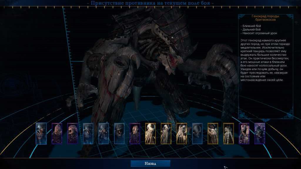Кстати говоря, среди генокрадов есть не только рядовые ксеносы, но и те кто представляет наибольшую угрозу при выполнении задания. Например смертоносный биоморф имея 8 очков действия может перепрыгивать через занятые клетки и наносить удар в спину вашим воинам, а ядовитый биоморф после гибели оставляет несколько клеток пораженных кислотой и действует по типу тяжелого огнемета.