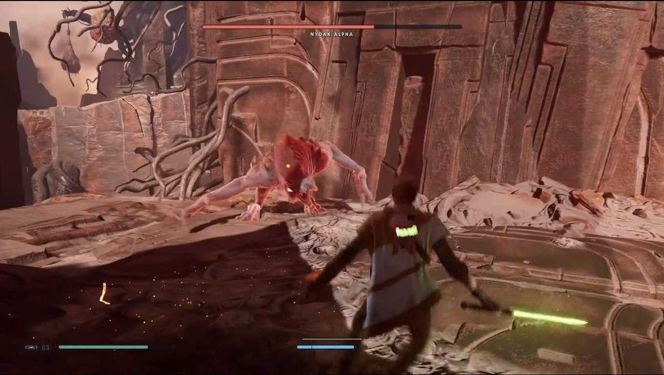 Теперь расскажем о том, как отрезать язык Огдо Богдо в Star Wars Jedi: Fallen Order. Все очень просто: со временем, получив способность замедлять время, активируйте ее в момент атаки Огдо Богдо языком и ударьте по застывшему языку мечом.