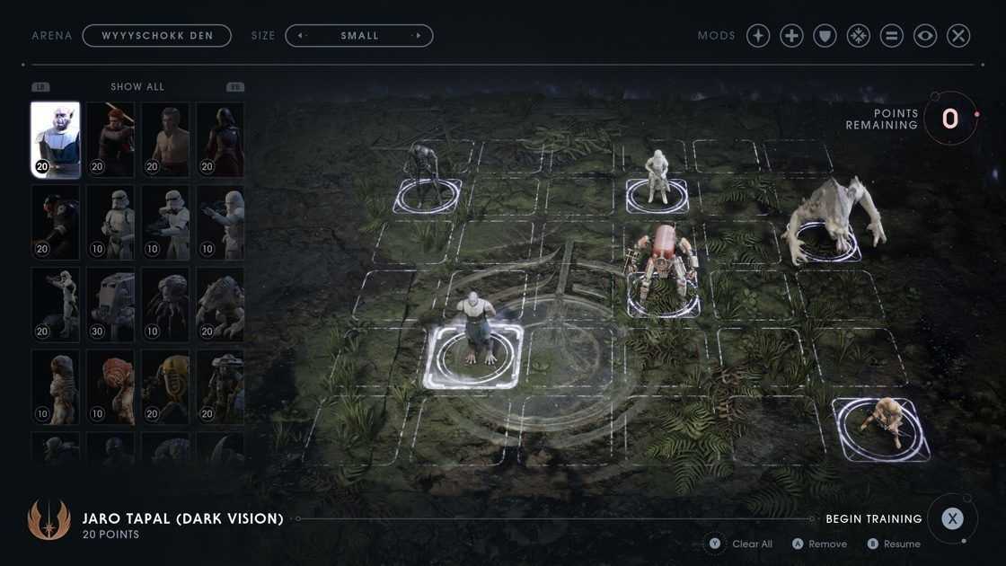 Самой же интересной частью апдейта стал новый режим медитативных тренировок, включающий в себя несколько боевых заданий против волн противников, а также боевую сетку, в которой можно выстраивать свои собственные сражения с врагами из основной игры, в том числе с наставником Кэла мастером-джедаем Джаро Тапалом и инквизитором Кэлом.