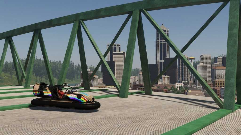 Для выполнения этого задания добавляем Hovercraft в избранное и летим над стадионом в Сиэтле и переключаемся на Hovercraft, в следствии чего попадаете на крышу стадиона. Сам стадион находится в Сиэтле, практически в центре города.