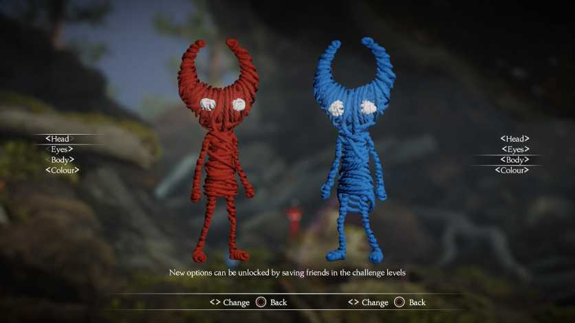Вы можете полностью кастомизировать обоих игроков: изменить глаза, внешний вид, голову и цвет ниток. Выбор невелик, но для небольшого изменения «внешки» — вполне достаточно.