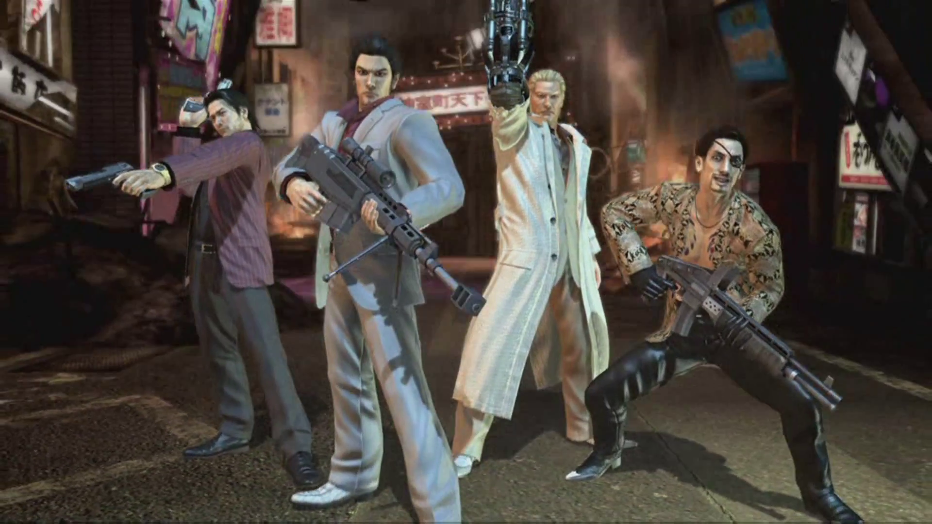 Kiryu fires at some unknown foe with his appropriated Makarov.