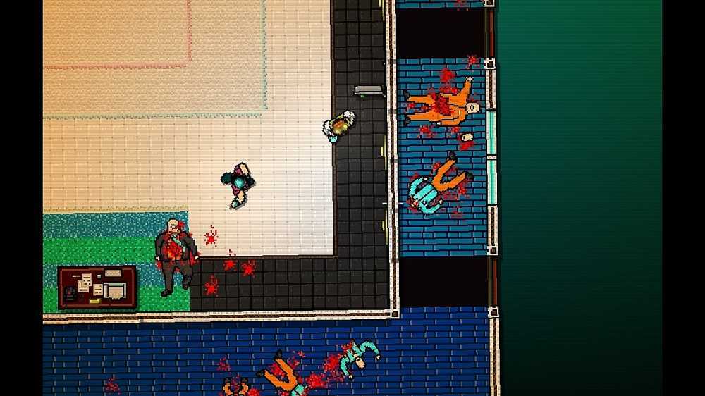 Зачистка уровня – как шахматная партия. Герой погибает от одного единственного удара или случайной пули, так что приходится просчитывать каждый свой шаг. Но дело в том, что Hotline Miami – не какой-нибудь стэлс-экшен, а брутальное, простите, мочилово, в котором скорость реакции и соображалки играющего играет решающую роль. Ты выбиваешь дверь, роняя врага на пол, хватаешь выпавшую из рук противника биту, превращаешь его голову в кровавую кашу, идёшь в следующую комнату, огреваешь ещё одного противника по затылку, отбираешь дробовик, с диким гаканьем врываешься в следующую комнату, устраиваешь кровавый массакр с литрами крови и выпущенными кишками, а прибежавшего на звук выстрелов последнего врага отправляешь в нокдаун броском опустевшего огнестрела.