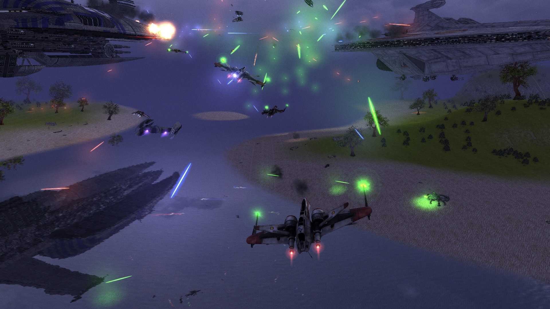 Ещё один мод, но уже от не русских разработчиков. Если честно так то мод норм (правда сырой, но норм). Плохо то, что миссии есть, но текстуры в большинстве случаев не грузятся вообще, или они уж через чур легкие… По поводу боев в космосе, я их не видел, воздушный транспорт, багованный, джедаи не проработаны. Вообщем решать только вам, я рекомендую ,если вам вот прям ооооочень хочется поиграть в этот мод