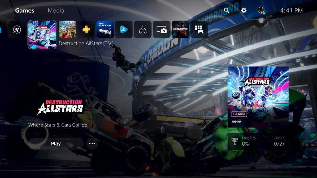 Давайте на минутку перейдем к пользовательскому интерфейсу. Это единственное место, где Sony взяла все, чему научилась от PS4 и PS3, и реализовала лучшее из обоих миров. С самого начала весь пользовательский интерфейс находится в HDR, а визуальные эффекты просто появляются на экране телевизора. Запустите консоль и войдите в систему и вы увидите 2 вкладки — Игры и Медиа.