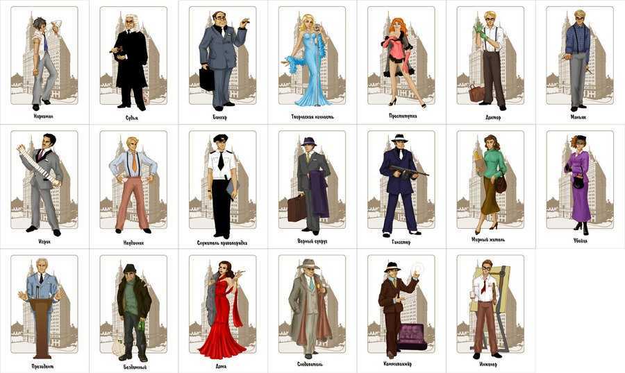 В традиционной версии «Мафии» встречаются следующие персонажи:
