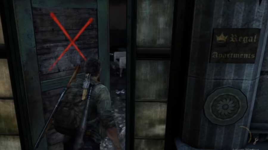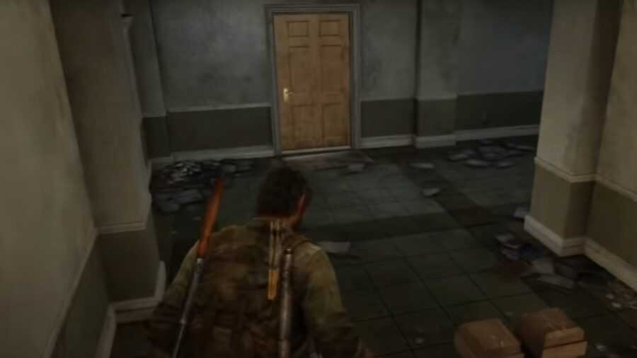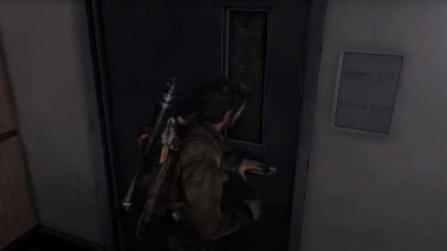 Наконец, после того, как Джоэл решает, что Светлячки не могут оставить Элли, он врывается обратно в больницу, которую они используют в качестве своей лаборатории. Дверь для заточки можно найти на шестом этаже больницы. Совершив долгий подъем по винтовой лестнице на шестой этаж, пройдите через дверь. Перепрыгните через столешницу, и во внутреннем углу будет дверь для заточки.