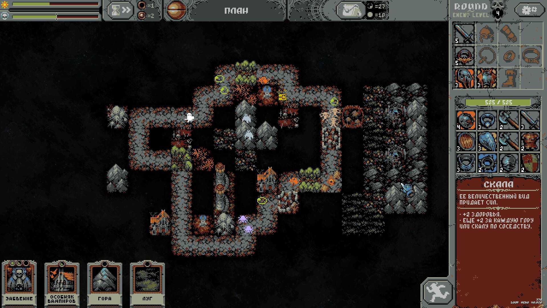 Loop Hero – это рогалик с элементами градостроительной стратегии, где управлять надо не героем, а миром вокруг него. Протагонист сам ходит по кругу, сталкиваясь с противниками. В бою герой использует свои навыки и выданное ему снаряжение.
