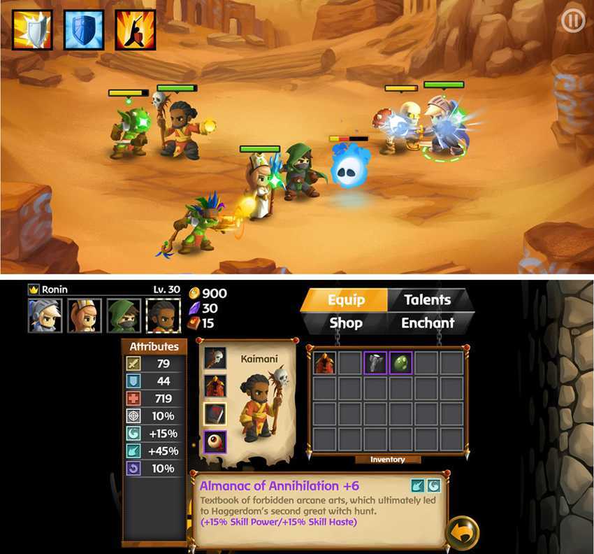 Игроку нужно умело использовать карты атаки, защиты и поддержки в реальном времени, а не пошагово. Враги — все те же полчища монстров — могут застанить, заморозить или как-то еще подпортить жизнь вашему персонажу. В этот момент из карточных боев в реал-тайме игра становится кликером: нужно тапать пальцем по экрану, чтобы освободиться из оков или прийти в себя, защититься от удара или оглушения.
