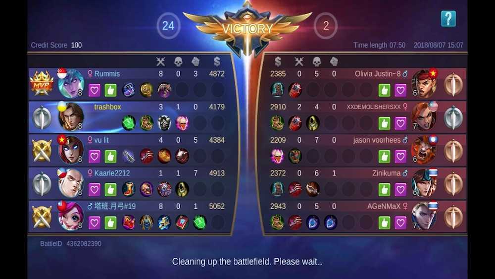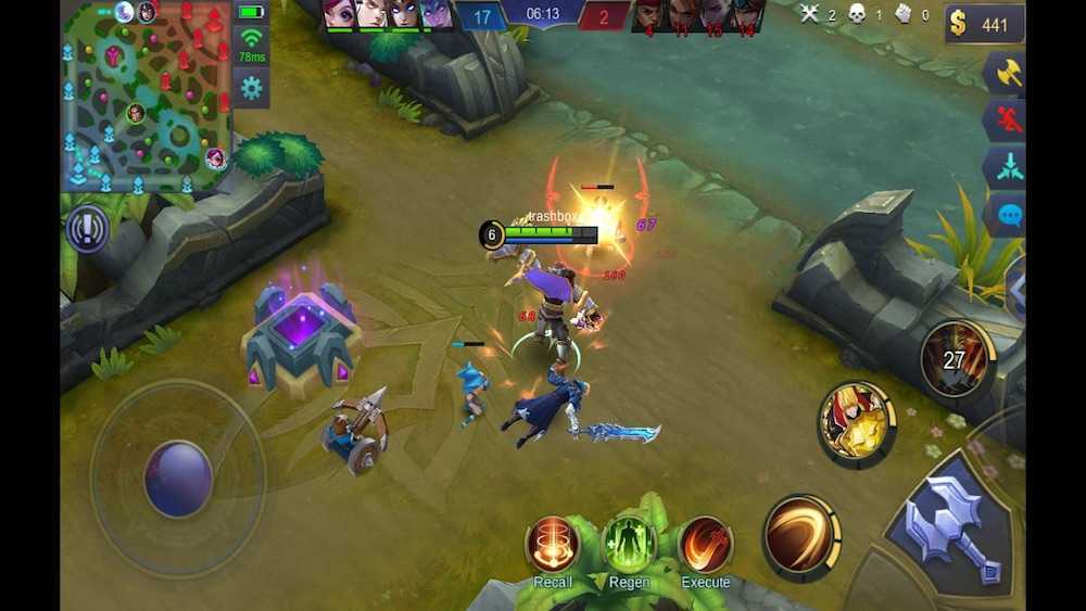 Аудитория Mobile Legends: Bang Bang заметно меньше основных конкурентов, так как проект относительно недавно отправили в свет. Правда, находит сражение буквально за 30-40 секунд. Либо онлайн большой, либо разработчики хитро внедряют ботов, но сидеть по пять минут в ожидании противников не приходится. Управление выполнено в классическом для этого жанра стиле, карта с тремя линиями и троном тоже на месте. Получается некая смесь Лиги Легенд и Dota 2 в виде мобильной MOBA. Есть у продукта один серьёзный недостаток — нет поддержки дисплеев с соотношением сторон 18:9, из-за чего справа и слева имеются чёрные полосы.