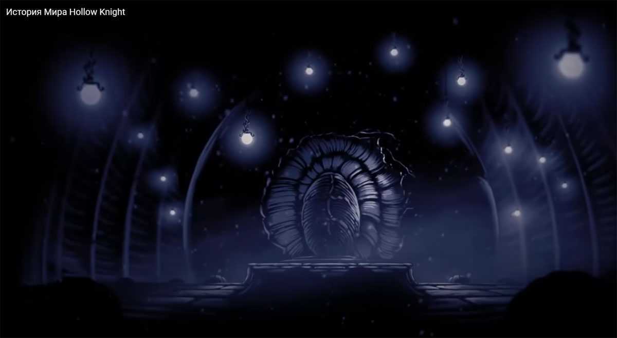 Сама битва с ним очень трагична и сопровождается невероятным саундтреком. После победы над ним начинается небольшой ролик, в котором наш Полый Рыцарь поглощает оранжевый свет, то есть Сияние и занимает место своего предшественника, а Чёрной Яйцо просто закрывается.