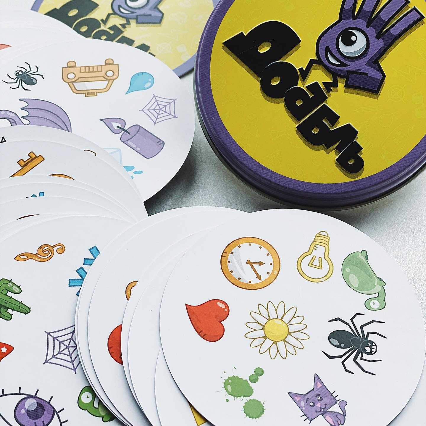 Позже, на основе последней, Денис Бланшот в сотрудничестве с Жаком Коттеро создали «Доббль». Новая версия проще и позволяет действовать на уровне рефлексов. Кроме того, было увеличено количество карточек с 31 до 57. Изначально на каждой карточке было 6 символов, потом их стало 8.