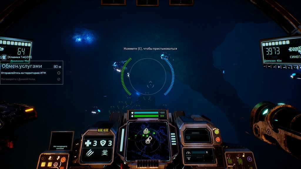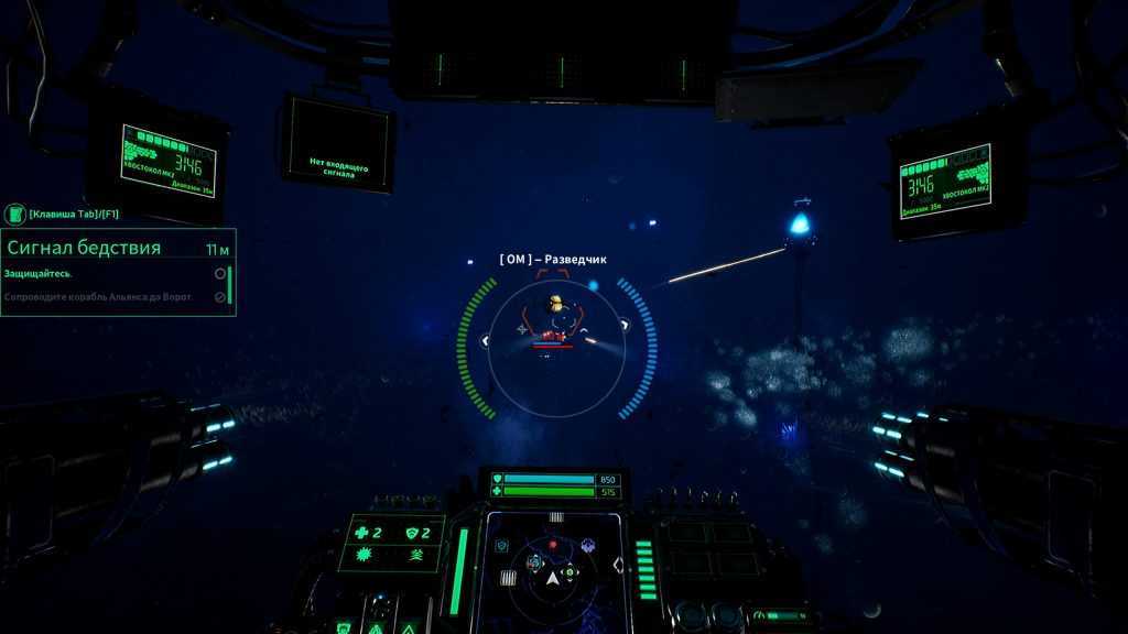 О хабе я уже немного рассказывал. Там можно (а порой и нужно по сюжету) общаться с персонажами. Помимо этого хаб служит магазином для боеприпасов и мастерской для апгрейдов корабля. Покупать патроны и расходники, собирая для этого ресурсы — неплохая идея. Апгрейды же — огромная проблема. Лучше бы нам в арсенал сразу сунули все самое интересное. Потому что большая часть игры проходит с базовым оружием в руках, а всякие крутые пушки, обвесы и новые корабли открываются со временем по скриптам. Дать игроку максимальный фан с первых минут или заставить его страдать добрую половину кампании — разработчики выбрали второе.