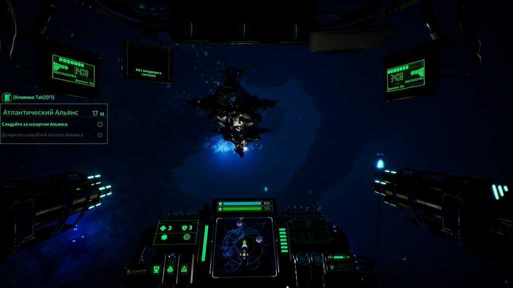 Скорость — одна из ключевых проблем игры, помимо плохой видимости и общей серости локаций. Ощущаешь себя, словно в киселе. Да, все происходит под водой и маневренности истребителя я не прошу. Но хотя бы дайте бесконечное ускорение — аналог спринта в других играх. Оно длится всего пару секунд, а потом опять ждешь отката и опять тянешься вперед, по сантиметру, по миллиметру… Скукота.