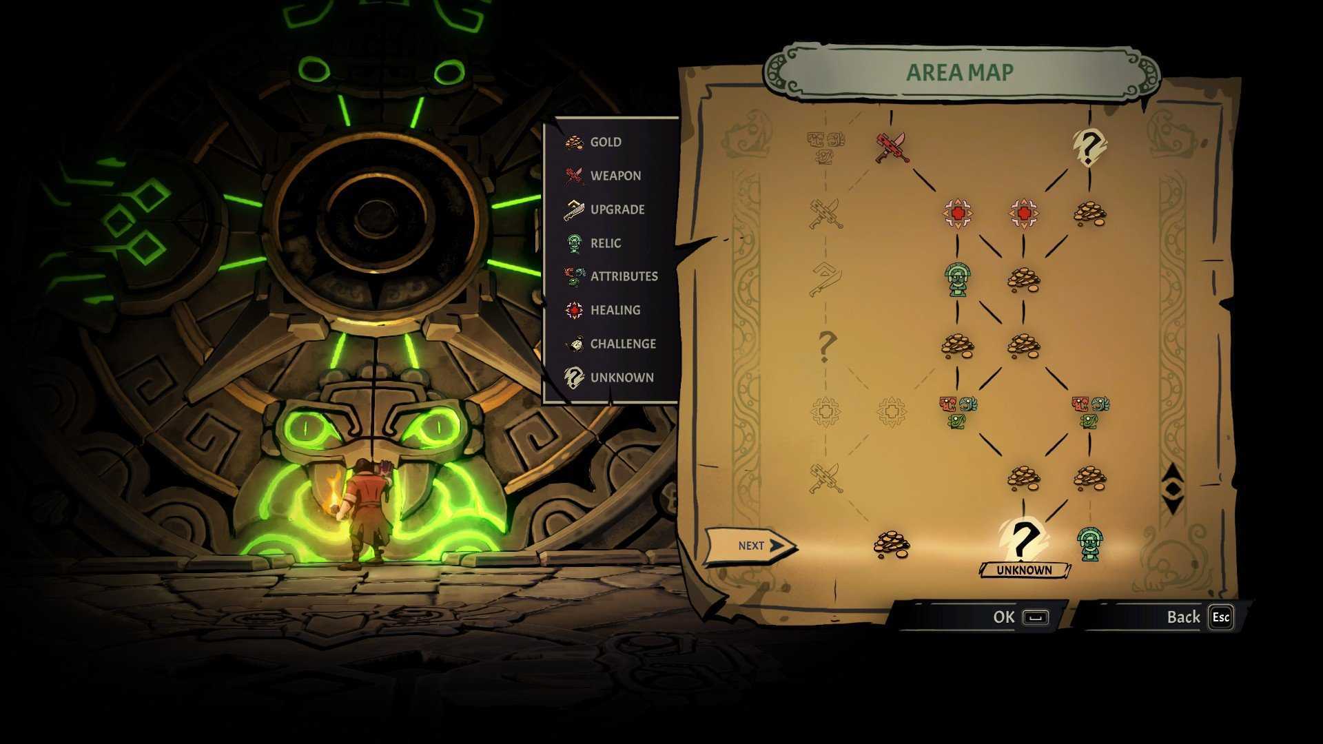Every run in Curse of the Dead Gods follows a route, room by room, that you can pick as you go. When you first start a run, you can pick a starting spot and plan how you’ll go from there. While curses can throw off your path by making unknown rooms, you should still plan a route. Before you start any temple, you can see the entire route by scrolling up and down.