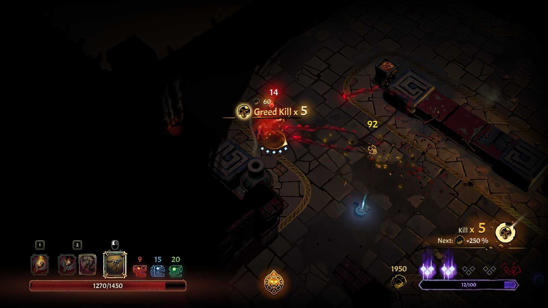 The greed mechanic in Curse of the Dead Gods is a great way to keep your gold high if you’re able to use it well. For every enemy you kill that doesn’t have a purple health bar, you’ll build a greed combo earning more gold. But, you have to do this without getting hit or running out of time. All you need to do to keep that timer up is hit an enemy, land a parry, or a perfect dodge. Taking full advantage of this mechanic will help you earn more gold so you can buy all sorts of buffs during your run.