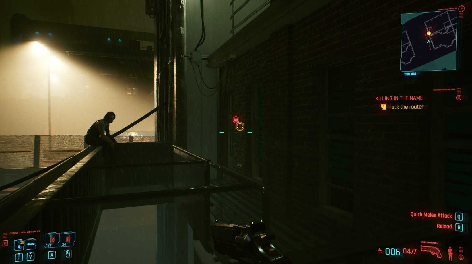 На протяжении всего этого квеста может быть сложно определить, что вам нужно сканировать для продвижения. На этот раз вы ищете маршрутизатор на стороне здания, ведущего к пожарной лестнице на стене.
