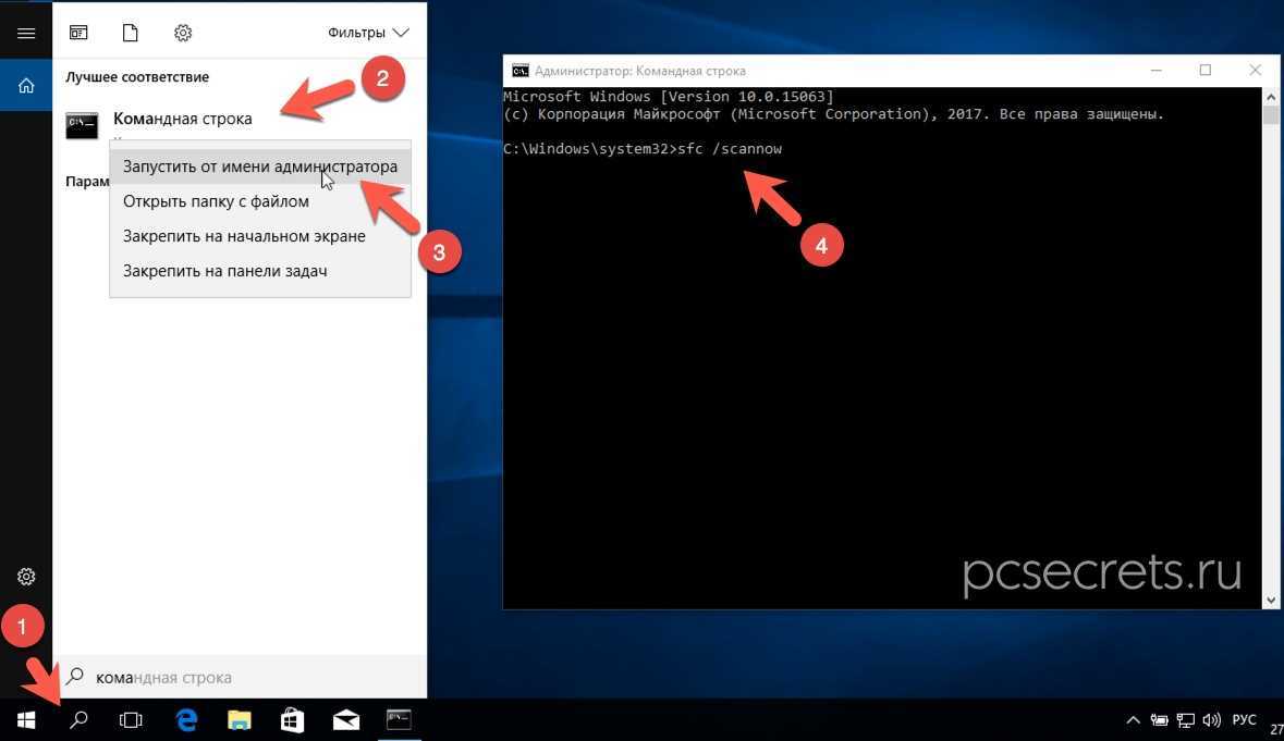 - Откройте «Командную строку» от имени администратора (для этого в поиске просто введите «Командная