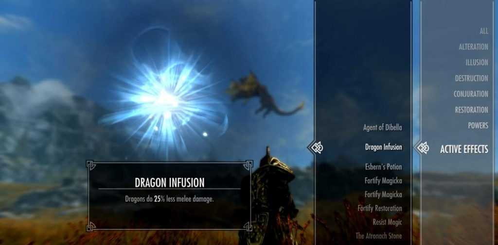 “Драконьи кости и чешуя” занимает такую высокую позицию в списке только из-за того, как часто в Skyrim встречаются драконы. Благодаря этому эффекту драконы наносят на 25% меньше урона в ближнем бою, помогая справляться с укусами и ударами хвостом. Это очень сильно поможет, если вы собираетесь сразиться с легендарными драконами. Кстати, эта сила также снижает вероятность того, что дракон съест вашего персонажа. Такое может случиться, если рейтинг брони сравнительно низок.