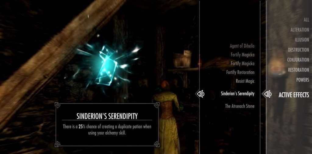 “Сюрприз Синдериона” дает игроку 25%-ый шанс создать 2 одинаковых зелья. Это особенно полезно, если персонаж специализируется на Алхимии
