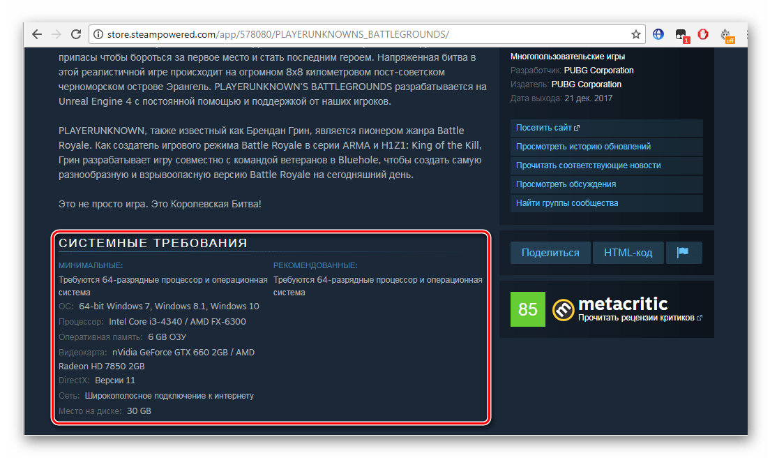 Сейчас большинство продуктов покупается на игровых интернет-платформах, например, в Steam или Origin. Там на странице выбранной игры отображаются минимальные и рекомендуемые системные требования. Обычно указывается необходимая версия Windows, подходящие видеокарты от AMD и NVIDIA, процессор и место на жестком диске.