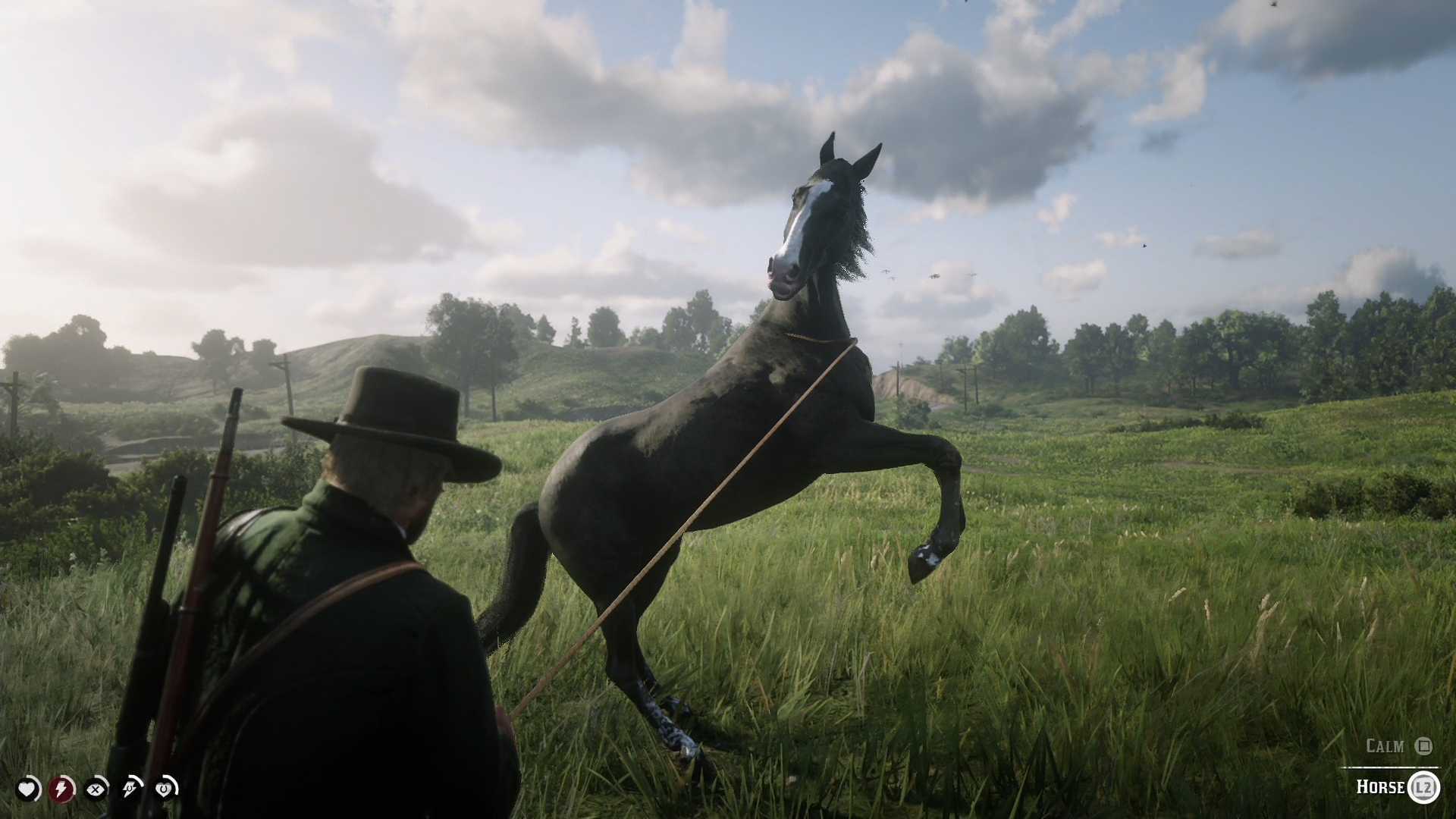 Также не забывайте, что лошадь магическим образом не огибает встречные препятствия и запросто может врезаться головой о дерево или стоящий на пути валун. Риск летального исхода для лошади очень велик. И поверьте, необходимость десятки минут брести по миру игры в попытках найти новую лошадь, ничто по сравнению с тем чувством разочарования, когда вам приходится своими руками усыпить искалеченное животное. Особенно, если вы провели с ним не один час игры.