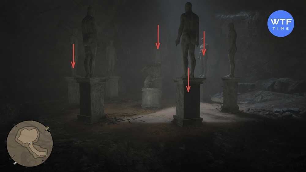 Если ошиблись, ничего страшного. Обойдите статую вокруг и нажмите кнопку с обратной стороны. Когда все сделаете правильно, услышите звуковой сигнал и сможете забрать слитки из тайника в основании центральной статуи.