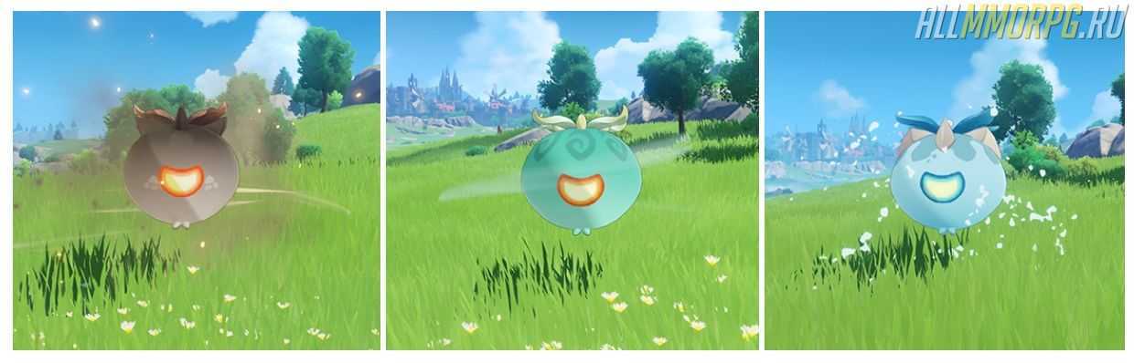 Соответственно, каждый из них невосприимчив к урону своей стихии. То есть, анемо-призраков вам не убить способностями Сахарозы или Венти, а гидро-существ бесполезно бить Моной, Барбарой или Кокоми.