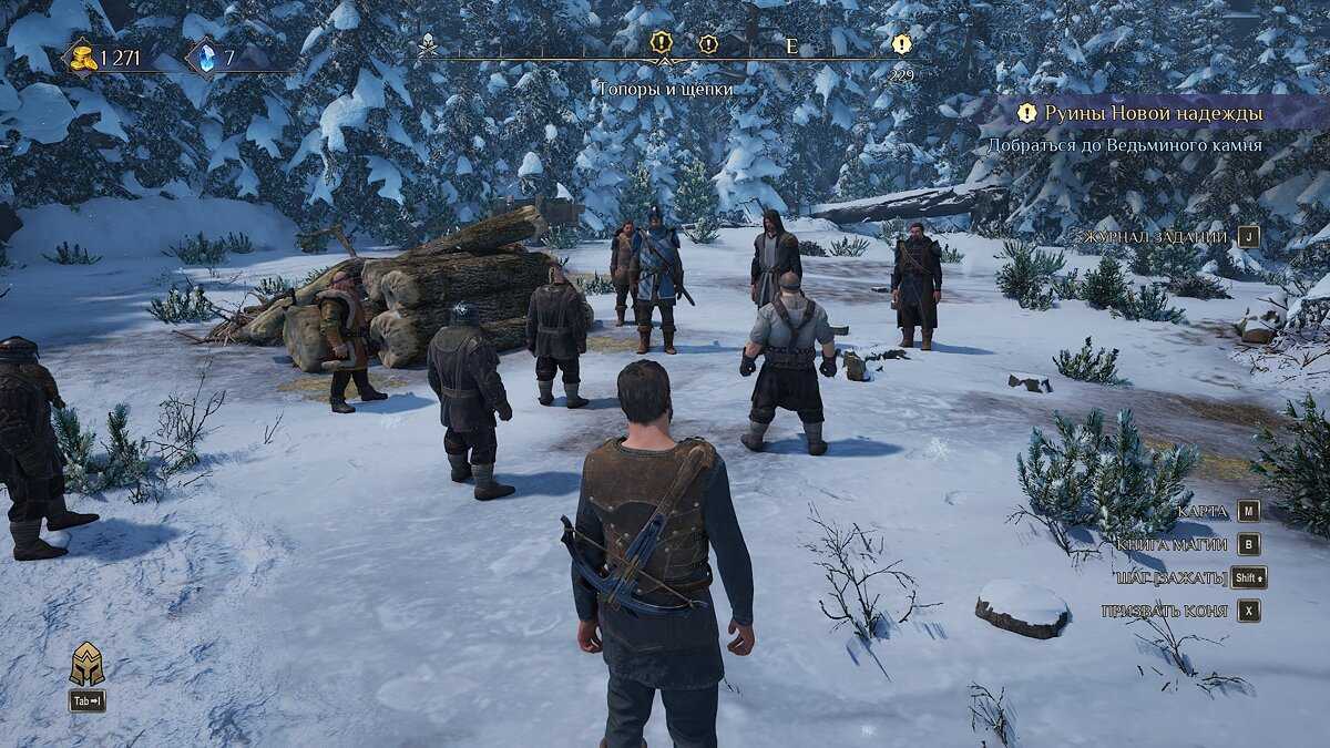 В лагере закупаемся дровосеков дворфами и волками и следуем по маркеру за Добираемся.